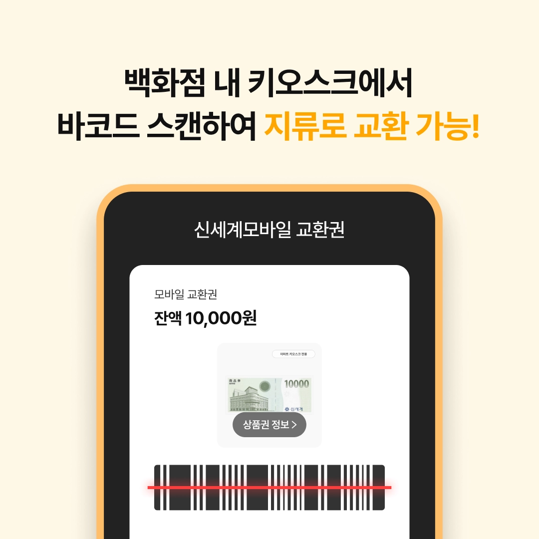 자세한 교환 가능 지점은 '비플페이 APP > 신세계 상품권 구매 페이지’ 내 안내사항 확인해주시기 바랍니다.